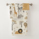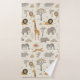 Make bath time a wild adventure with this Savanna Sunrise towel set. The standout facecloth features a friendly, hand-drawn lion graphic and is personalized with your young child’s name and the coordinating towels feature friendly safari animals, including the lion, giraffe, elephant, zebra, and hippo, playfully arranged alongside acacia trees and a rising sun. This set is perfect for a "young explorer" themed bathroom, providing a special, custom touch that helps a child feel right at home in their own private savanna. Search ID1259 to see other products with this cute safari pattern. Note: design adapted from generative content.