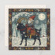 A whimsical Scandinavian folklore tomte riding a goat through snow, inspired by vintage Swedish style. Background only, no text, designed to leave space for writing.