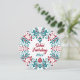 Una tarjeta de vacaciones de estilo nórdico en tonos rojos y verdes profundos, personalizable con la elección de año y texto personalizado.
