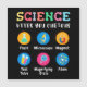 Playful science artwork made for curious kids and young students. Cute symbols like flask, microscope, magnet, test tube, magnifying glass and atom help children explore science in a fun and easy way. Ideal for school, learning and discovery.