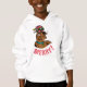 Echa un vistazo a Scooby-Doo en su gorra festivo y sus lentes, riéndose con risas y con la palabra "¡Feliz!" escrita a continuación.