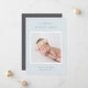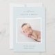 Elegante anuncio de nacimiento en colores suaves presenta una foto cuadrada recién nacida enmarcada en blanco, con "bienvenido [Nombre]" en la parte superior con letras grises de moda. Personalice con la fecha de nacimiento del bebé, y las estadísticas de nacimiento debajo, y agregue un mensaje personal a la parte de atrás, junto con una foto adicional.