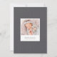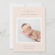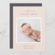 Elegante anuncio de nacimiento en colores suaves presenta una foto cuadrada recién nacida enmarcada en blanco, con "bienvenido [Nombre]" en la parte superior con letras grises de moda. Personalice con la fecha de nacimiento del bebé, y las estadísticas de nacimiento debajo, y agregue un mensaje personal a la parte de atrás, junto con una foto adicional.