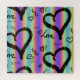 El diseño de Love is Wild incluye garabatos de amor, xoxo y corazones en un tipo de letra con aspecto de piel sobre un fondo de rayas inspiradas en la iluminación del escenario de conciertos. ¿De quién no se anima un poco al ver a su artista favorito actuar? ¡Es amor en la primera canción!