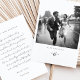 Comparte la alegría incontenible de tu boda con esta moda y tarjeta de agradecimiento de fotos moderna. El diseño destaca de manera destacada su foto franca favorita, capturando perfectamente un momento de felicidad pura de su celebración. Debajo de la imagen, la frase "MEJOR. DÍA. EVER." es elegantemente indicado, seguido de un elegante monograma personalizado con sus iniciales, añadiendo un toque personal sofisticado. El lado inverso continúa con el tema moderno y sincero con un bello mensaje de agradecimiento escrito en un delicado tipo de letra manuscrita. En contraste con los clásicos títulos séricos, la nota personal expresa su gratitud a la familia y amigos por su amor y apoyo. Todo el texto, incluido el mensaje y sus nombres, es totalmente personalizable. Esta tarjeta es la manera perfecta de compartir un vistazo de su día alegre y enviar un cálido y personal agradecimiento a sus seres queridos.