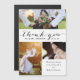 Tarjeta de agradecimiento de boda con guion de escritura a mano 3 fotos. Envíe su mensaje de agradecimiento de boda como recién casados a sus amigos y familiares utilizando esta hermosa, moderna y elegante tarjeta de collage de fotos de boda con las palabras "gracias" escritas en un guion de escritura a mano negro. Tarjetas de agradecimiento de boda con su foto. Diseño de Elke Clarke©. Reemplace las fotos de muestra con las suyas.