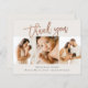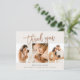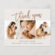 Esta nota moderna de 3 fotos de agradecimiento incluye rosa de escritura manuscrita dorada, gracias y detalles de nacimiento en el frente. La parte trasera incluye un mensaje personal de toda la familia. Haga clic en el botón de edición para personalizar este diseño con sus fotos y detalles.