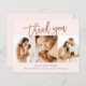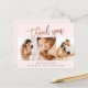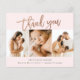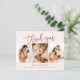 Esta nota moderna de 3 fotos de agradecimiento incluye rosa de escritura manuscrita dorada, gracias y detalles de nacimiento en el frente. La parte trasera incluye un mensaje personal de toda la familia. Haga clic en el botón de edición para personalizar este diseño con sus fotos y detalles.