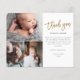 Esta tarjeta de agradecimiento Baby Thank You de Budget Script 3 Collage de fotos incluye un moderno mensaje de agradecimiento por caligrafía escrita a mano en oro y un mensaje personal en el frente. Haga clic en el botón personalizar para personalizar este diseño con sus fotos y detalles.