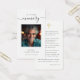 Honra a tu ser querido con nuestra Tarjeta de Oración de Fotos Funerales Script In Loving Memory. Esta elegante tarjeta cuenta con una preciada foto y una sincera oración, perfecta para proporcionar confort en un momento de pérdida. Diseñado con un toque minimalista y moderno, incluye una bella caligrafía de escritura y un salmo o oración de su elección. Ideal como conservador de memorias de simpatía, esta tarjeta es adecuada para ceremonias religiosas, incluyendo funerales católicos y cristianos. Personalízalo para crear un tributo significativo que la familia y amigos apreciarán.