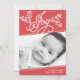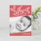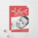 Elegante y moderna tarjeta de fotos navideña en rojo que dice "Alegría" agrega un mensaje personalizado y una foto al dorso de la tarjeta.
