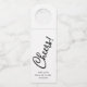 Estos colgadores de botellas simples y elegantes dicen "vítores" en un guión escrito a mano a la moda para un aspecto moderno en blanco y negro.