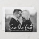 Guión moderno moderno de moda manuscrito Guardar la tarjeta de fotos en blanco y negro de la Invitación de compromiso de fecha
