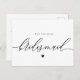 diseño elegante de caligrafía negra sobre fondo blanco, tarjeta de proposición de dama de honor. El texto y los colores se pueden editar.