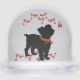 Perro mutt, travieso y malicioso, vestido con un cuello festivo que investiga curiosamente ramos de bayas de Navidades Añade tus propias palabras especiales - ¡tu propio toque especial o disfruta como está! Feliz Navidad!