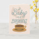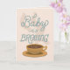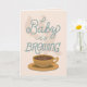 Un anuncio de bebé temático de café acogedor que incluye la frase Se está preparando un bebé. Este diseño divertido es perfecto para anunciar un embarazo a amigos y familiares de una manera divertida y memorable. Personaliza el interior con tu propio mensaje o déjalo en blanco.