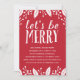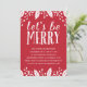 Una invitación festiva a la fiesta en rojo y blanco. La frase "Seamos alegres" está escrita en tipografía divertida y rústica, con bayas y hojas huecas enmarcando la invitación.