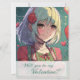 Manga colorida tarjeta de San Valentín con un encantador chica sosteniendo un corazón rojo y enmarcado por dulces detalles. La parte delantera muestra un encantador "¿Serás mi San Valentín?" en cartas lúdicas. Un gesto sincero lleno de amor y encanto.