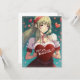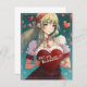 Manga colorida tarjeta de San Valentín con un encantador chica sosteniendo un corazón rojo y enmarcado por dulces detalles. La parte delantera muestra un encantador "¿Serás mi San Valentín?" en cartas lúdicas. Un gesto sincero lleno de amor y encanto.