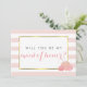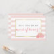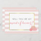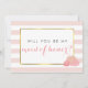 Pídele a tu amigo que esté contigo con esta hermosa tarjeta. El diseño presenta un delicado fondo de rayas rosas, un borde de oro falso y un grupo de peonías en tonos de bonito rubor. Coordina con nuestras suites invitadas de rayas rosadas y Rubor Peony, artículos de oficina, artículos para el hogar y accesorios.