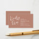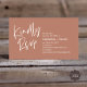 Presentamos nuestra tarjeta de respuesta para boda Modern Elegance: la mezcla perfecta de sofisticación y simplicidad. Diseñada para la pareja contemporánea, esta tarjeta de respuesta presenta un guión limpio y minimalista, y un toque sutil de terracota rústica marrón terroso para confirmar la asistencia de sus invitados. El diseño elegante complementa el tema de boda rosa polvoriento, agregando un toque de clase a su suite de papelería. Asegúrese de que su día especial esté meticulosamente planeado con nuestra tarjeta de respuesta elegantemente moderna: un recuerdo atemporal para usted y sus invitados. Diseñado por TeeshaDerrick