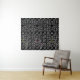 Un intrincado patrón de cruces y círculos grises que se entrelazan sobre un fondo negro con sólo un toque de color.