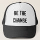 El miembro creó el gorra adaptable con las palabras "sea el cambio"