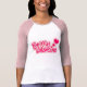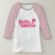 El cortocircuito del lema envolvió el top marrón de la camiseta, con lema rosado del el día de San Valentín lee, "sea mi tarjeta del día de San Valentín". Artículo diseñado exclusivamente por Sarah Trett.