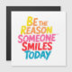 Apriete el día de alguien con esta alegre y estimulante tarjeta de saludo con la inspiradora frase "Sé la razón por la que alguien sonríe hoy" en letras vibrantes y coloridas. Ya sea que se lo estés regalando a un amigo o usándolo como un recordatorio diario para liderar con amabilidad, este diseño ofrece un mensaje de aliento, alegría y buenas vibraciones.