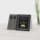 Usted será mis características de la tarjeta de la petición del portador de anillo grises y telas a rayas negras con botones de un oro, una pajarita y los anillos de bodas. Tarjetas de los sentimientos de ©2013 Kreative por el jerez Harris
