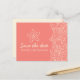 Dibujo simple de contorno en crema y coral de una pez estrella / mar, con agitación gráfica, guardar la tarjeta de fecha boda. Hermosa postal boda de color rosa y crema de arena naranja coral para enviar antes de las invitaciones. Una invitación perfecta para una boda de playa, de inspiración oceánica costera o de destino marítimo. Edite esta invitación con sus propias palabras. Arte original y de diseño único de Sarah Trett. www.sarahtrett.com para www.mylittleedenweddings.com