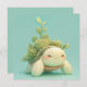 This heart-melting design features an incredibly adorable sea turtle with a peaceful, closed-eye smile and soft orange rosy cheeks. Rendered in a high-quality 3D clay style, the turtle has a smooth, matte cream-colored body with delicate light green spots on its flippers. In a whimsical twist, the turtle's shell has transformed into a lush miniature garden, overflowing with hand-sculpted green succulents, rounded thick leaves, and a tall, elegant vine reaching upward. Set against a clean, solid mint green background, the overall "kawaii" aesthetic is modern, bright, and full of gentle charm, making it an irresistible choice for any fan of nature, houseplants, and whimsical character art. This cheerful turtle postcard is a wonderful choice for sending a "slow and steady" encouragement note or a playful greeting to a friend who loves indoor gardening. You might choose to use this cute animal card for a botanical-themed baby shower invitation or to celebrate a spring garden party with your family members. It also makes a precious decorative piece for a child's bedroom or a bright addition to a sunroom guest book as a small token of happiness. This versatile design is also an excellent choice for plant shop opening announcements, succulent workshop invites, or as a heartwarming way to share a short message of joy for any situation or event.