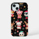 Seamless Christmas pattern with kawaii baby animals (baby cow, bear, fox, bunny, penguin, deer) wearing Christmas outfits (Santa hats, scarves, bells). Chubby cute style, glossy kawaii eyes, soft expressions. Christmas decorations: stars, snowflakes, candy canes, ornaments, pine twigs, small gift boxes. Deep black background with bold pops of Christmas red, gold, white, and pine green. Slight glitter and glowing highlights for a luxury Christmas feel, clean vector illustration, crisp outlines, festive yet premium vibe, seamless repeating tile.