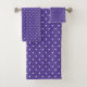 Seamless repeating pattern of evenly spaced small white polka dots on a solid medium purple background.