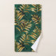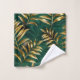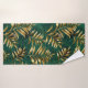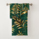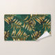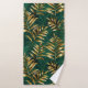 Seamless pattern of gold, jewelry, shiny fern branches and leaves on green, woodland, textured background. Golden fern.