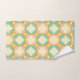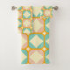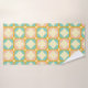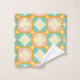 Seamless retro pattern with rounded squares in peach, teal, and cream hues, outlined in orange. Mid-century modern style, conveying a vintage, playful tone.