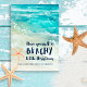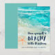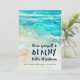 ¿Quién no amaría un poco de aire salado y arena entre los dedos de los pies durante las fiestas? Envíe a sus amigos y familiares sus Seas & Greetings con esta tarjeta de tema costero que presenta olas de océano turquesa tropicales en acuarela, arena, estrellas de mar y una leyenda "Tenga una pequeña Navidad playera" en azul marino. La línea inferior de texto se puede personalizar. Arte por KL Stock
