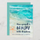 ¿A quién no le encantaría un poco de aire salado y arena entre los dedos de los pies durante las fiestas? Envíe a sus amigos y familiares sus Seas & Greetings con esta tarjeta de tema costero que presenta olas de océano turquesa tropical con acuarela, arena, estrella de mar y una leyenda "Tenga una pequeña Navidad playera" en azul marino. La línea inferior del texto se puede personalizar. Arte de KL Stock