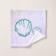 Ducha de bebé con conchas verde azuladas y fondo de color morado lavanda