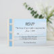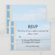 Soft Blue Seashell Beach Wedding RSVP. Excelente estilo boda RSVP para bodas en la playa o en el destino. Una concha azul suave de color azul teñida con una cinta de encaje azul. Una playa de arena y unas olas perfectas para tu boda personalizado. Invitaciones coincidentes, de agradecimiento, y productos de boda adicionales disponibles.