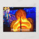 Saludos de temporada Feliz tarjeta del Angel Post de Navidad con Navidades iluminados Angel contra un fondo azul adornando la noche entre las luces anuales de los Navidades en el centro de Mount Dora, Florida.