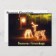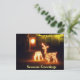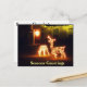 Sazons Greetings Merry Christmas Deer Post card con luces de ciervos Navidades y un arrecife de Navidades brillantes en la puerta delantera. Festividades Navidades Postales Tarjeta para negocios o amigos para celebrar Navidades.