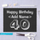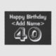 40.º cumpleaños papel de papel de papel de tela envuelto en blanco y negro. El nombre, la edad y el mensaje se pueden personalizar para un personalizado que se añada a los suministros de su fiesta.