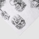 Personajes caprichosos del libro de los niños Alice in Wonderland, Alice, the White Rabbit, Mad Hatter, Caterpillar y Cheshire Cat aparecen en blanco y negro en este papel de tejidos con temas de la literatura británica para envolver o desacoplar regalos y artes y artesanías.