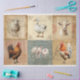 Seis animales de granja en papel de desacoplamiento de tejidos de collage para proyectos de muebles y artesanías