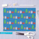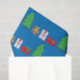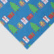 Papel de tejido diseñado con árboles de Navidad y regalos de fondo azul. Feliz Navidad!