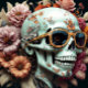 Seda Calavera de flor cara negra Papel de tejidos Mouss