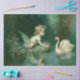 Seda Cherub jugando en papel de tapete de estanque