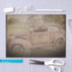 Papel de tejidos con un coche vintage, abandonado en un campo NC