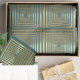 Papel decorativo, elegante y glamuroso color azul verde azulado y papel dorado con cuadrados dorados brillantes intrínsecamente ligados a producir una fascinante ilusión 3D.